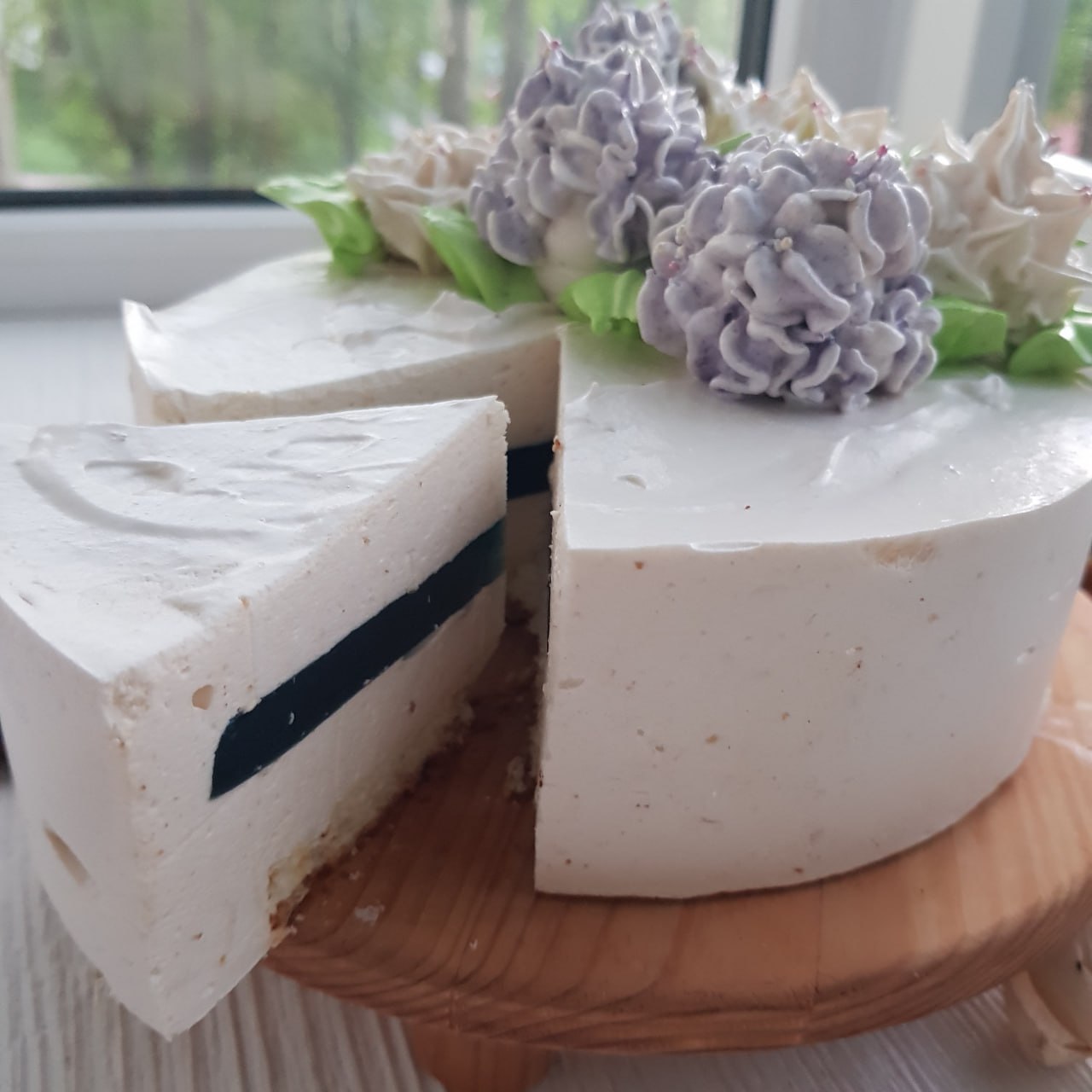 ЗЕФИРНЫЙ ТОРТ С ЦВЕТОЧНЫМ ДЕКОРОМ И ТРЮФЕЛЬНОЙ ПРОСЛОЙКОЙ.
