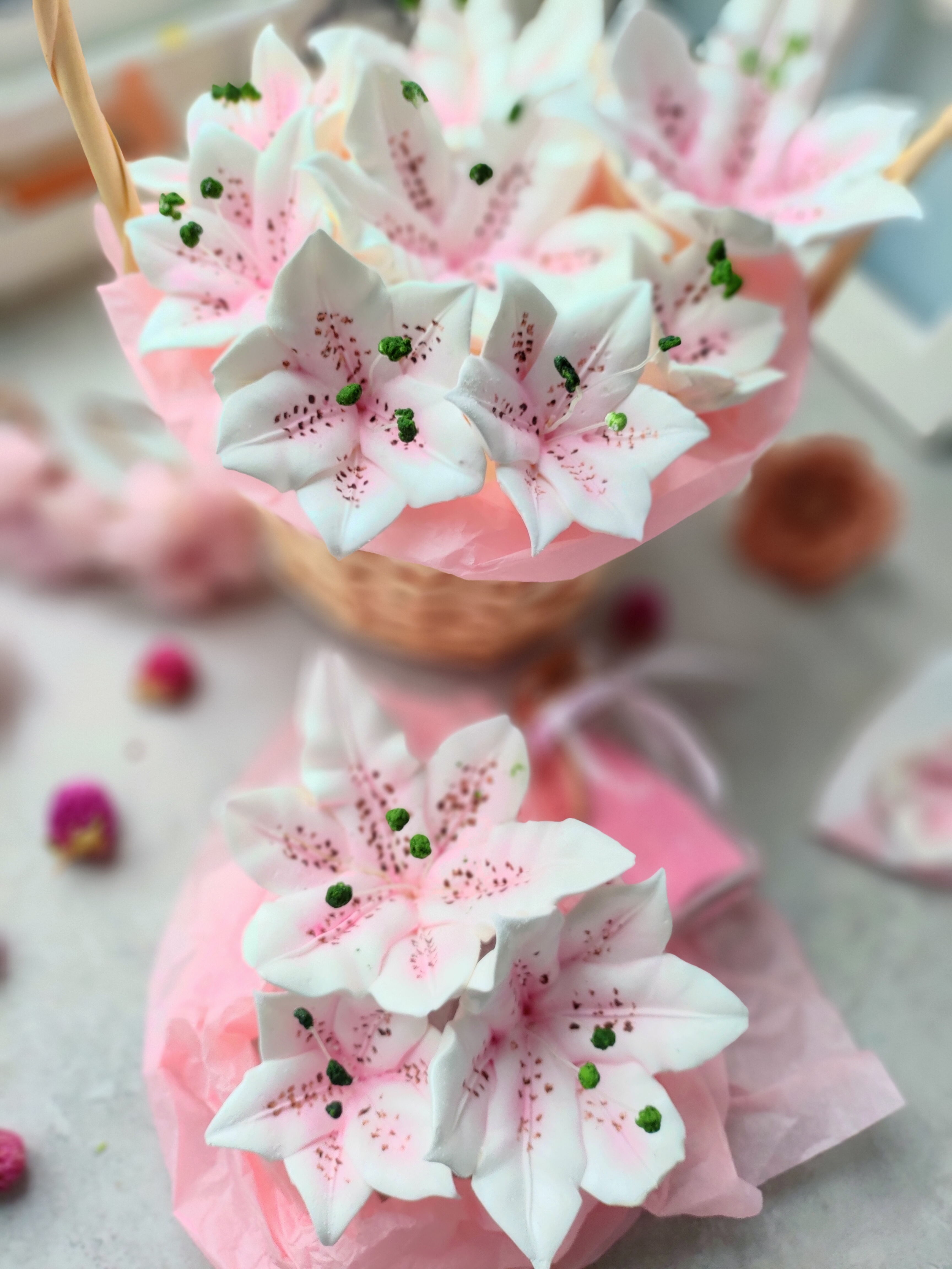 🌺В рамках интенсива мы сделаем два вида зефирной сирени и два вида упаковки: в букете и в корзине.