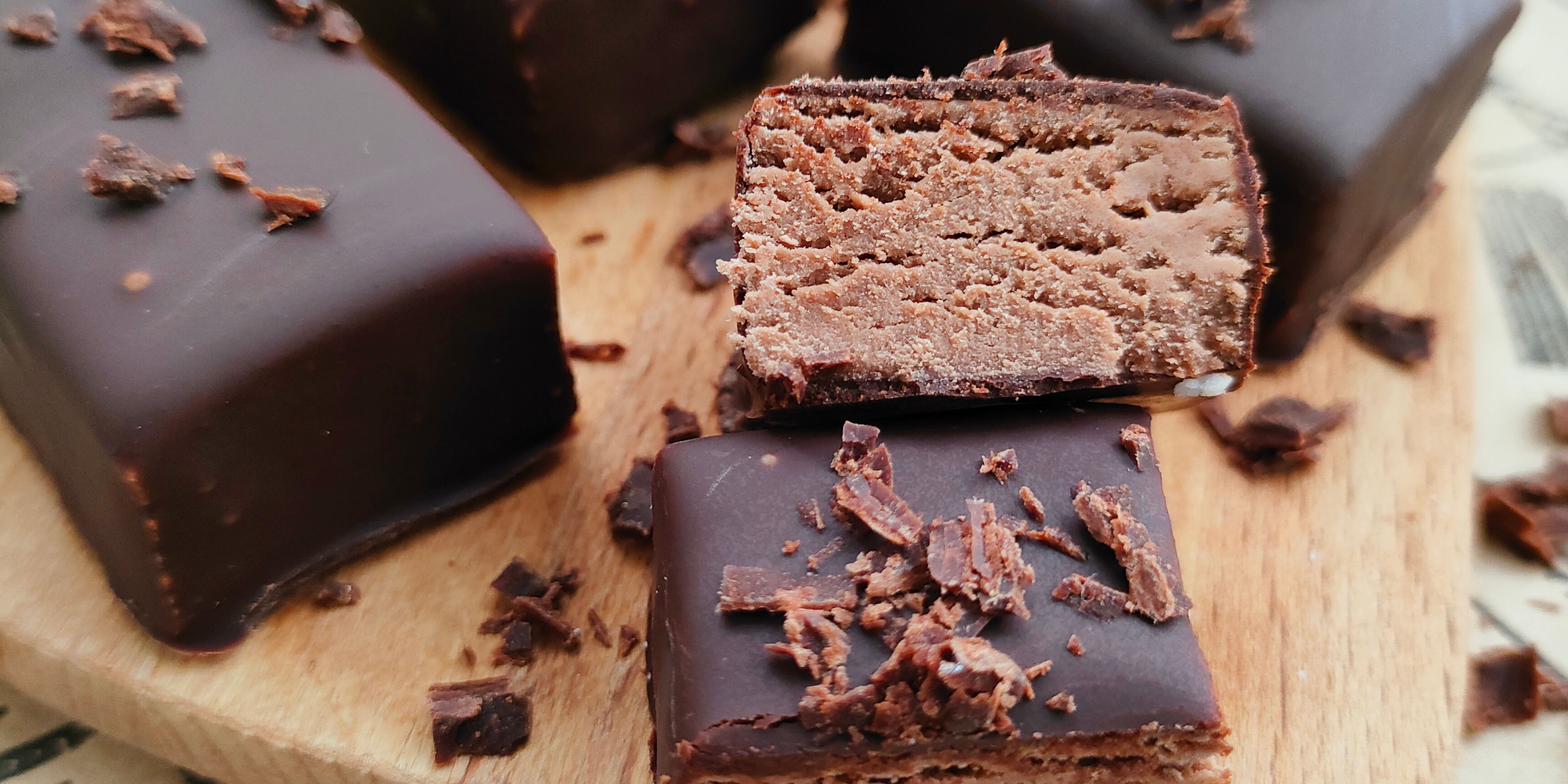 Готовим нарезные конфеты из фундучного пралине с вафельной прослойкой.
