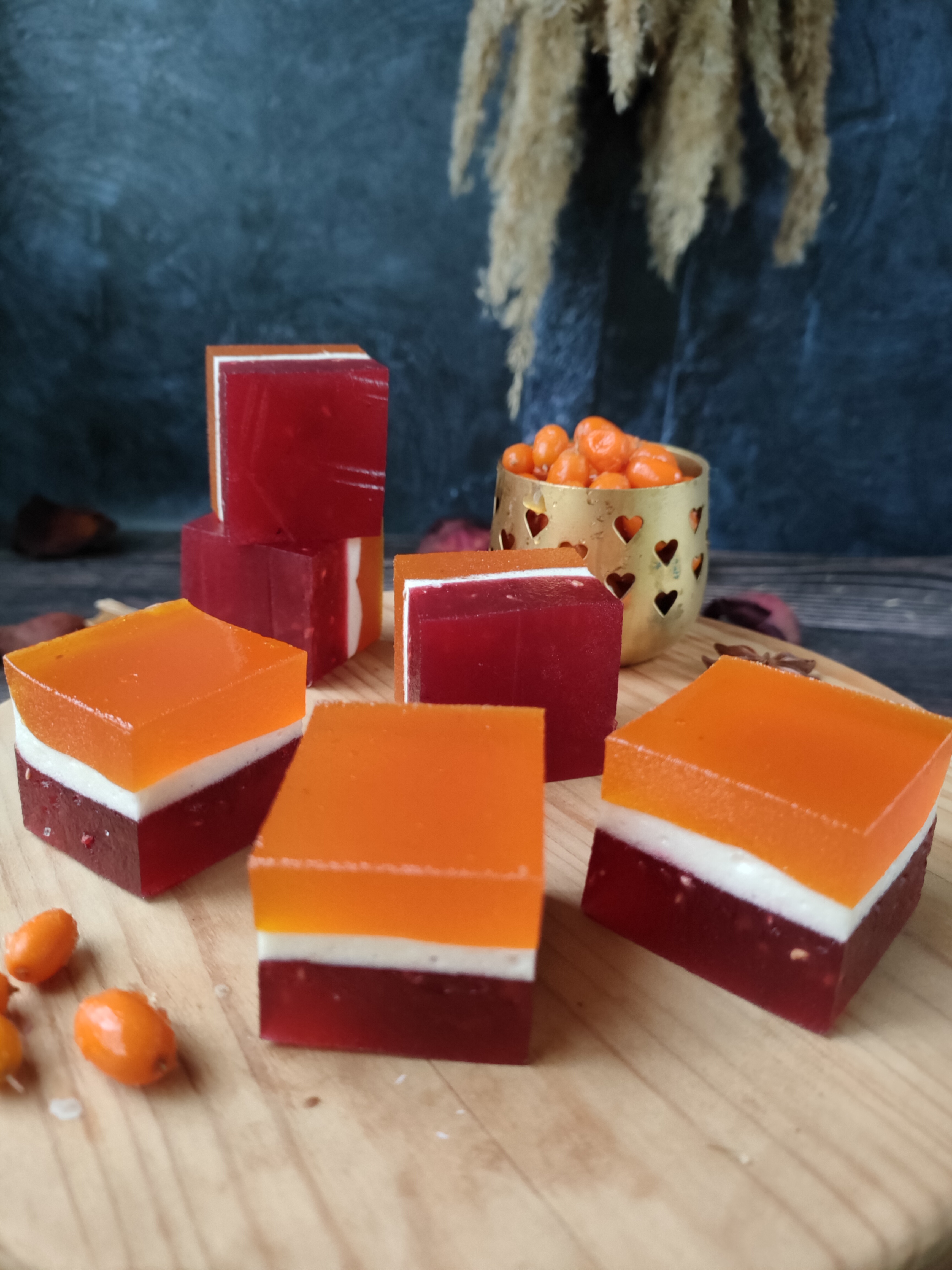 🌼МАРМЕЛАД МАЛИНА - ОБЛЕПИХА - ТРЕХСЛОЙНЫЙ нарезной.